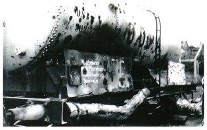 Enkeltfoto fra fotoalbum med seriebilleder fra 9. April 1940 og bombardementerne af Aalborg i 1940. Desuden bombeskadede bygninger i Nyborg samt nedskudte allierede fly.