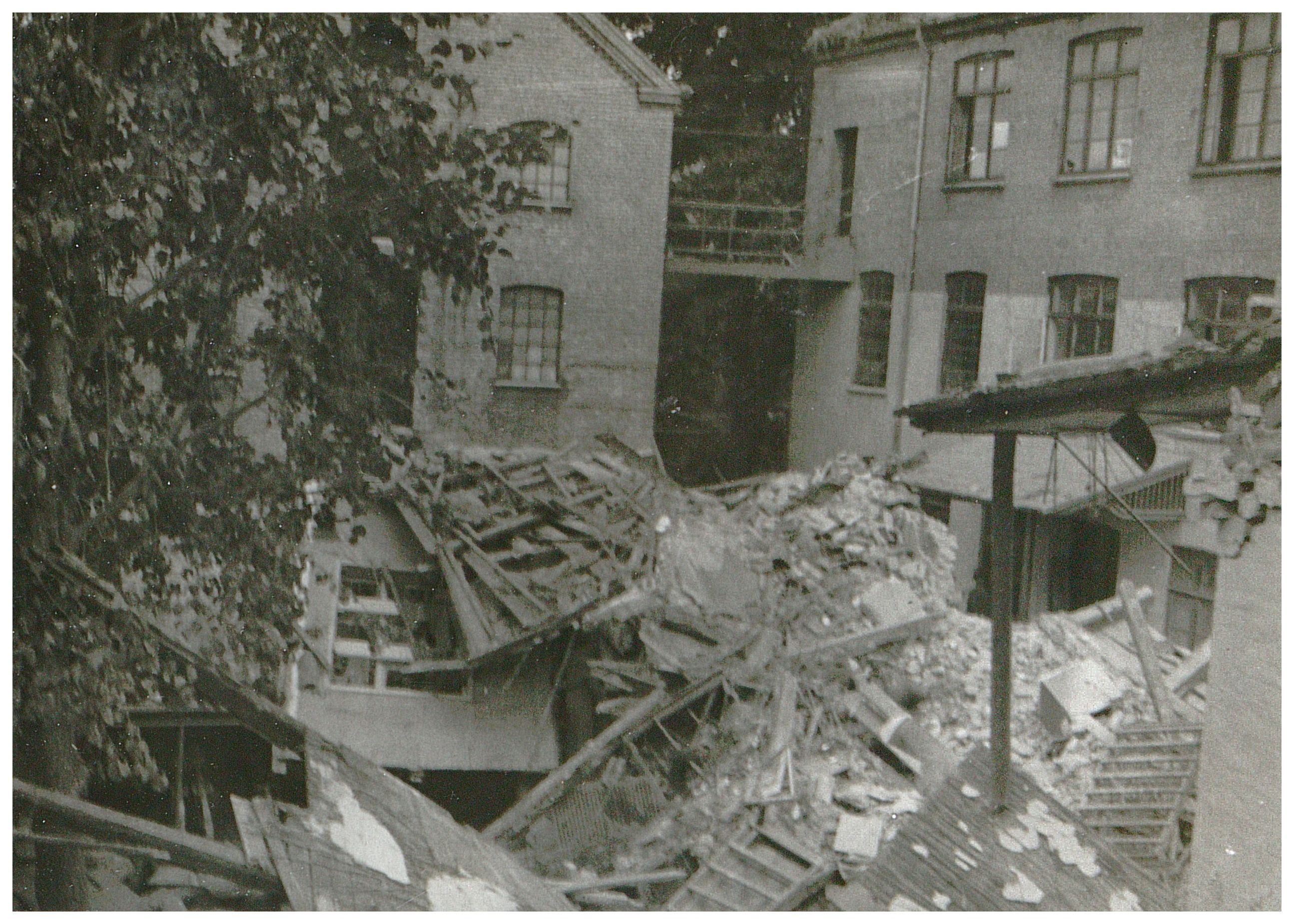 Enkeltfoto fra fotoalbum med seriebilleder fra 9. April 1940 og bombardementerne af Aalborg i 1940. Desuden bombeskadede bygninger i Nyborg samt nedskudte allierede fly.