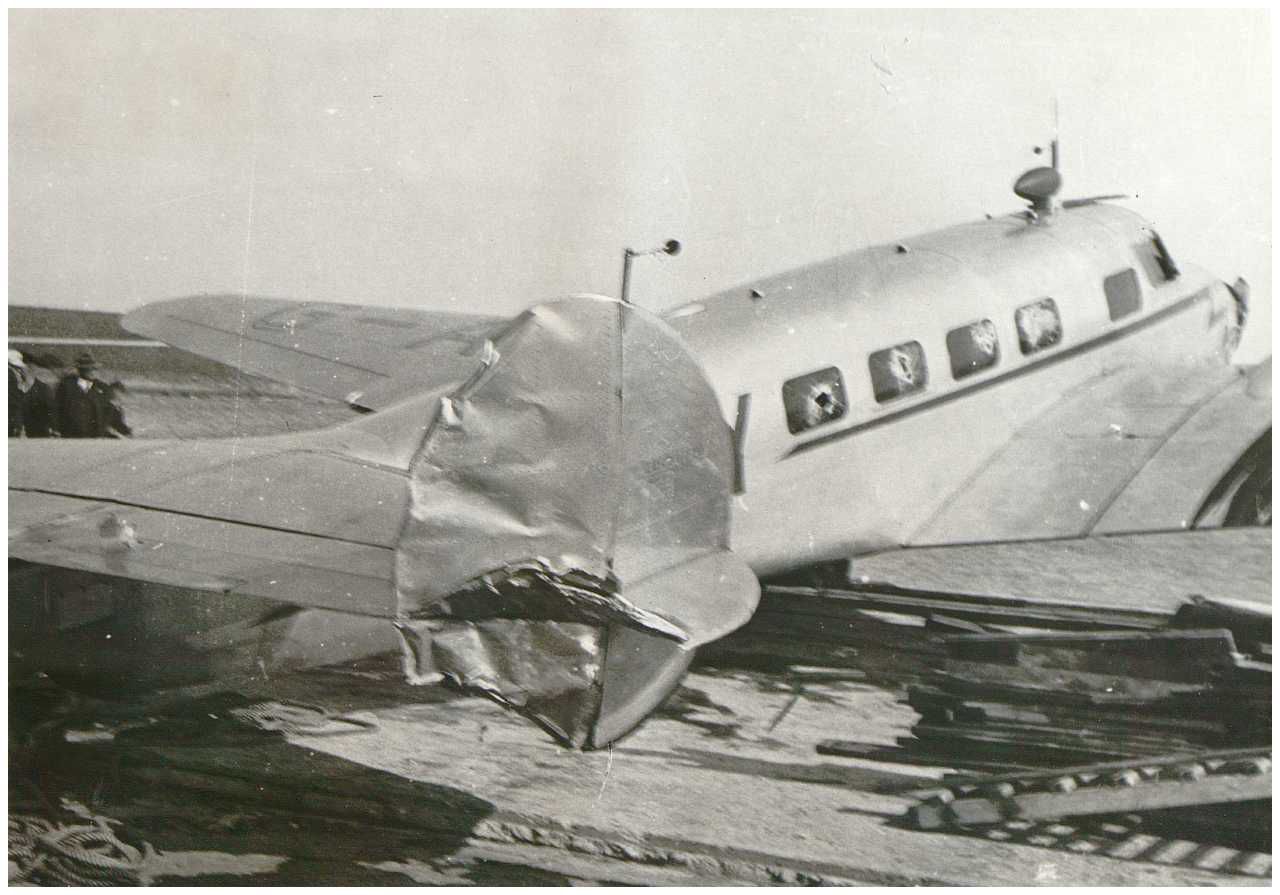 Enkeltfoto fra fotoalbum med seriebilleder fra 9. April 1940 og bombardementerne af Aalborg i 1940. Desuden bombeskadede bygninger i Nyborg samt nedskudte allierede fly.