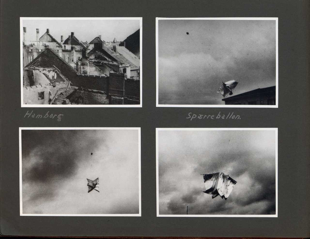 Enkeltside fra fotoalbum der har tilhørt fotohandler Jens Christian Høeg fra Randers. Indeholder mest ikke-originale fotos af strejker, sabotager og schalburgtager fra hele landet.