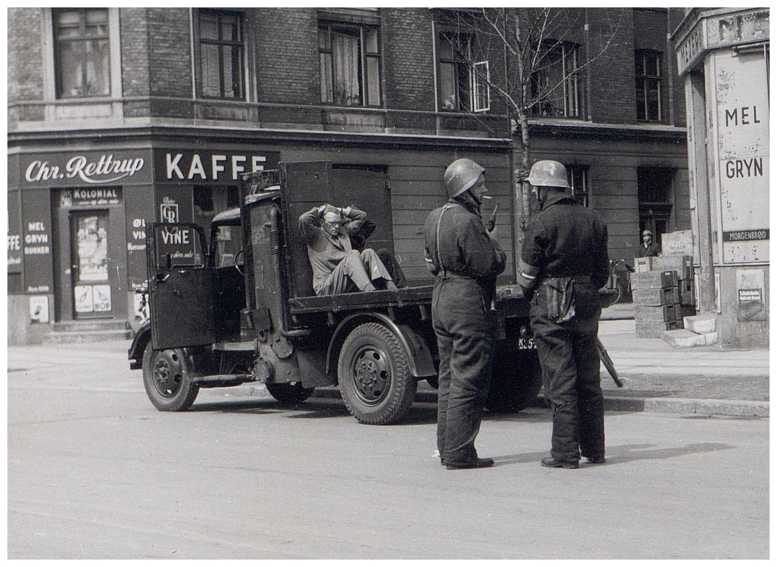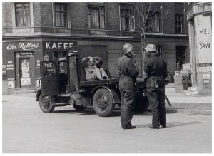 Enkeltfoto fra fotoalbum der har tilhørt fotohandler Jens Christian Høeg fra Randers. Indeholder mest ikke-originale fotos fra 1944-45, der hovedsagligt viser sabotager og schalburgtager fra hele landet samt befrielsen.