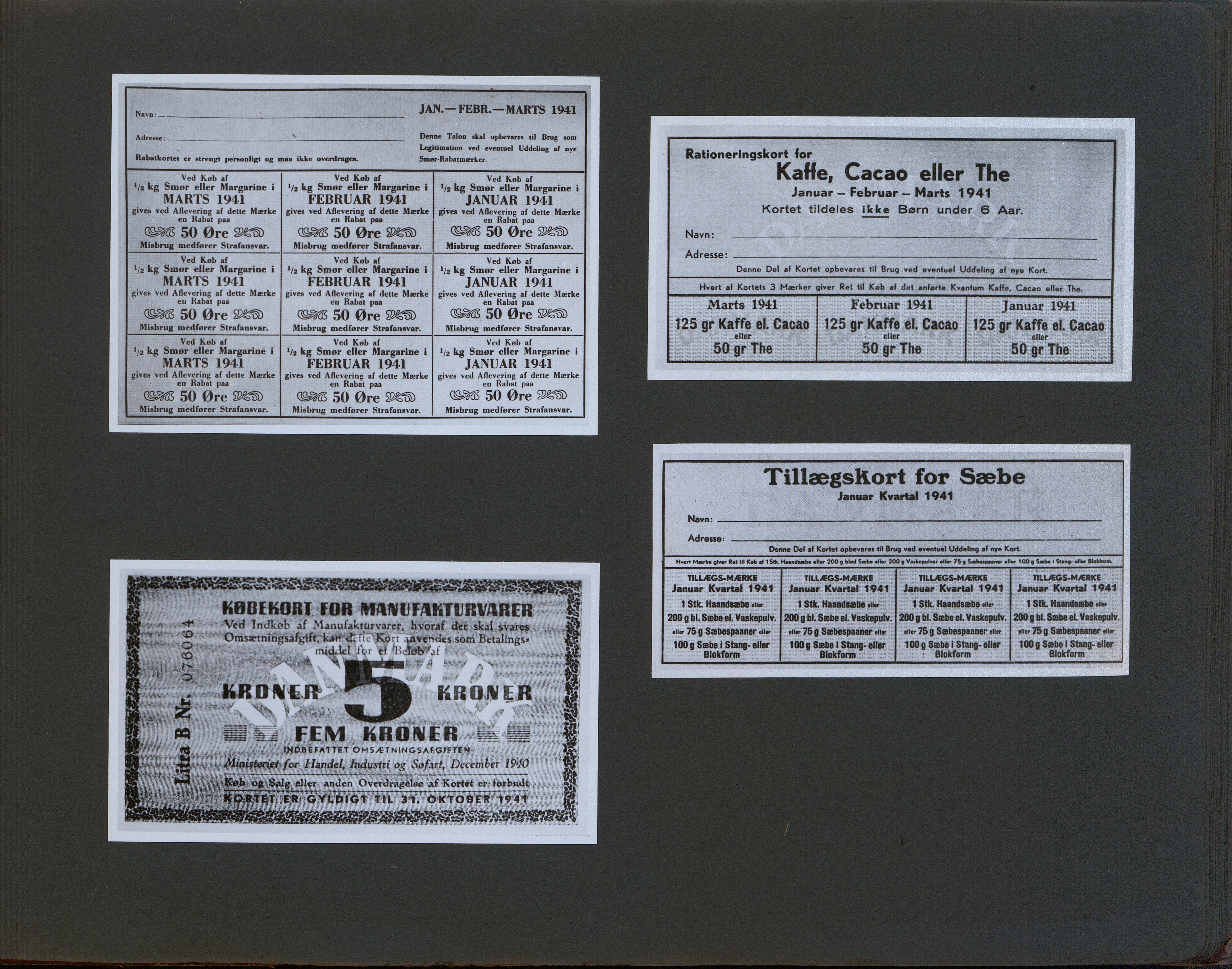 Enkeltside fra fotoalbum der har tilhørt fotohandler Jens Christian Høeg fra Randers. Indeholder mest ikke-originale fotos fra 1940-41 bl.a. med: minesprængte skibe, Lufwaffe enheder og antiluftskyts, Alsang, bomberydning, spildindsamling samt nedskudte tyske fly m.m.