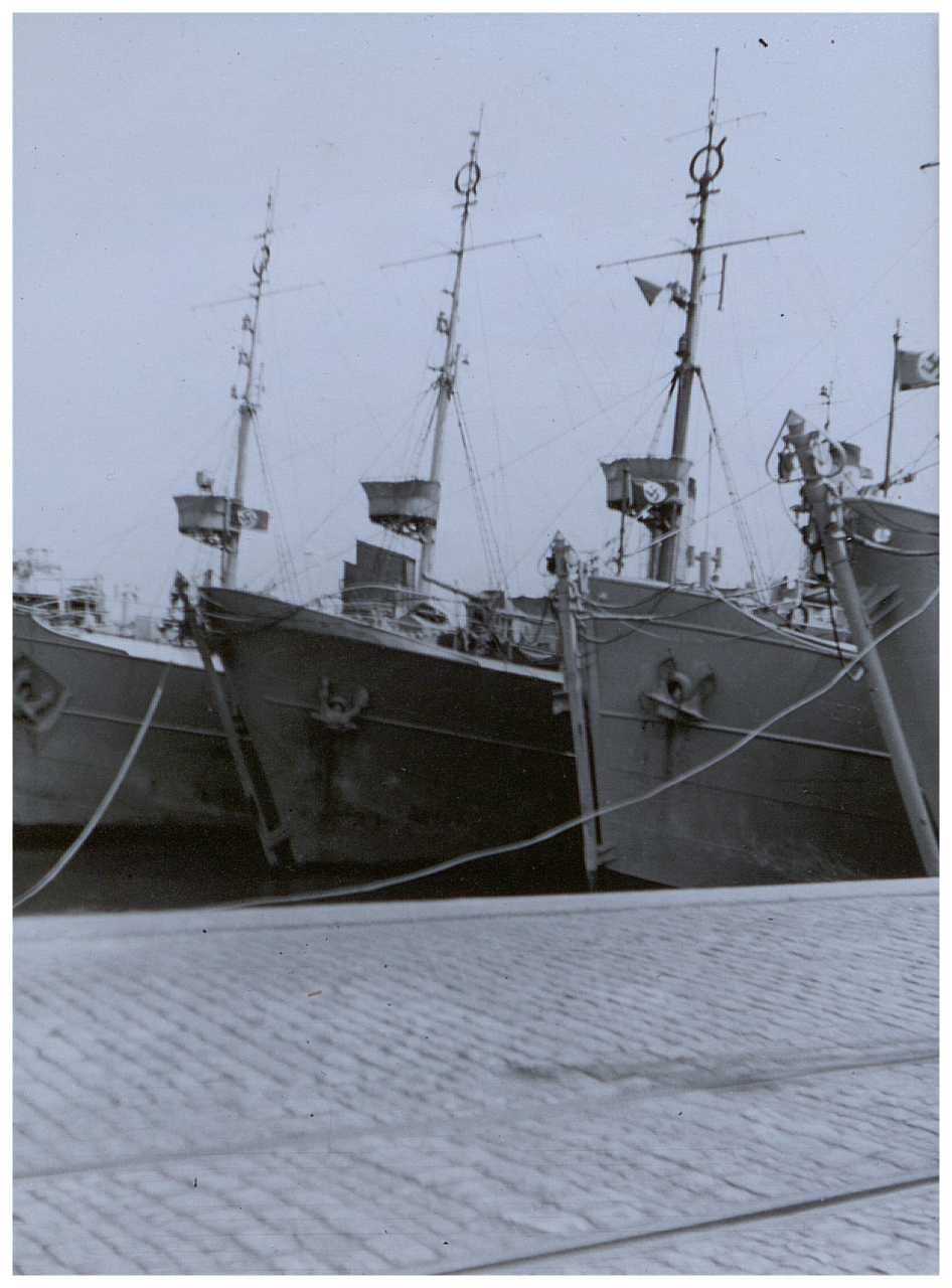 Enkeltfoto fra fotoalbum der har tilhørt fotohandler Jens Christian Høeg fra Randers. Indeholder mest ikke-originale fotos fra 1940-41 bl.a. med: minesprængte skibe, Lufwaffe enheder og antiluftskyts, Alsang, bomberydning, spildindsamling samt nedskudte tyske fly m.m.
