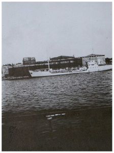 Enkeltfoto fra fotoalbum der har tilhørt fotohandler Jens Christian Høeg fra Randers. Indeholder mest ikke-originale fotos fra 1940-41 bl.a. med: minesprængte skibe, Lufwaffe enheder og antiluftskyts, Alsang, bomberydning, spildindsamling samt nedskudte tyske fly m.m.