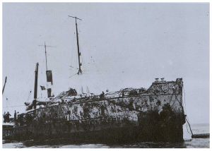 Enkeltfoto fra fotoalbum der har tilhørt fotohandler Jens Christian Høeg fra Randers. Indeholder mest ikke-originale fotos fra 1940-41 bl.a. med: minesprængte skibe, Lufwaffe enheder og antiluftskyts, Alsang, bomberydning, spildindsamling samt nedskudte tyske fly m.m.