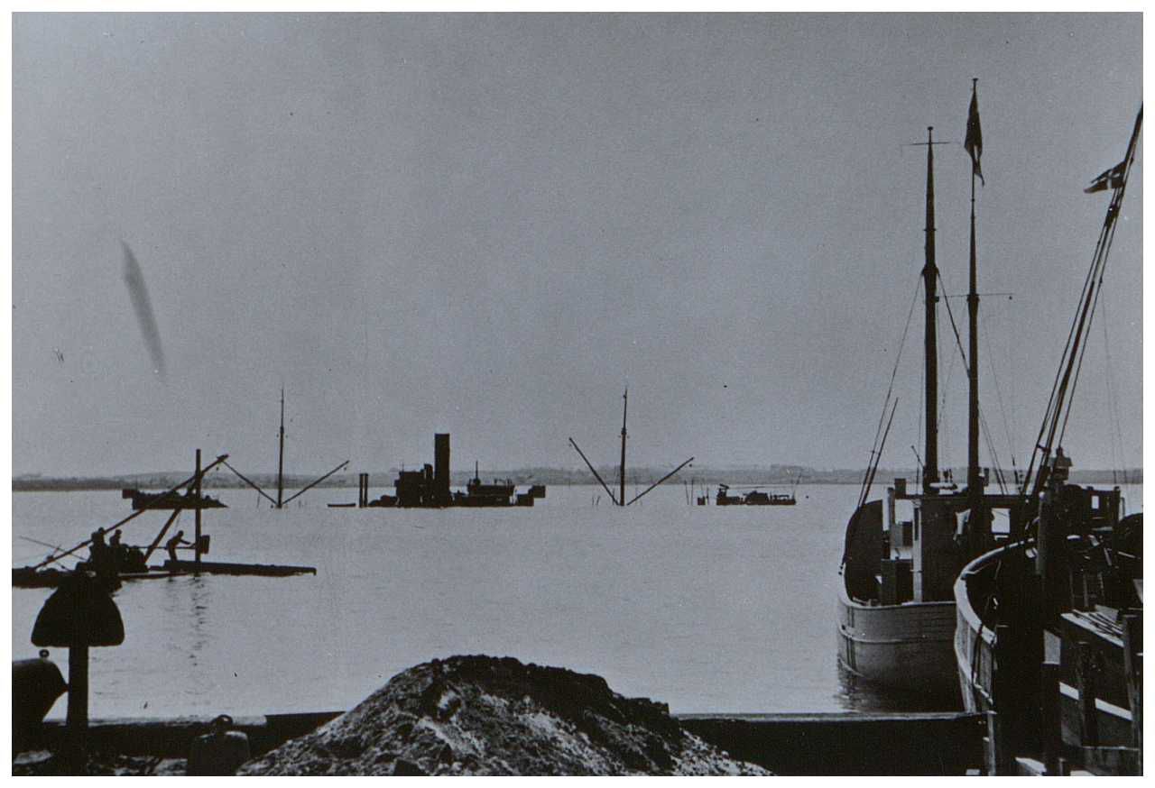 Enkeltfoto fra fotoalbum der har tilhørt fotohandler Jens Christian Høeg fra Randers. Indeholder mest ikke-originale fotos fra 1940-41 bl.a. med: minesprængte skibe, Lufwaffe enheder og antiluftskyts, Alsang, bomberydning, spildindsamling samt nedskudte tyske fly m.m.