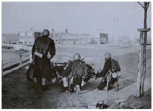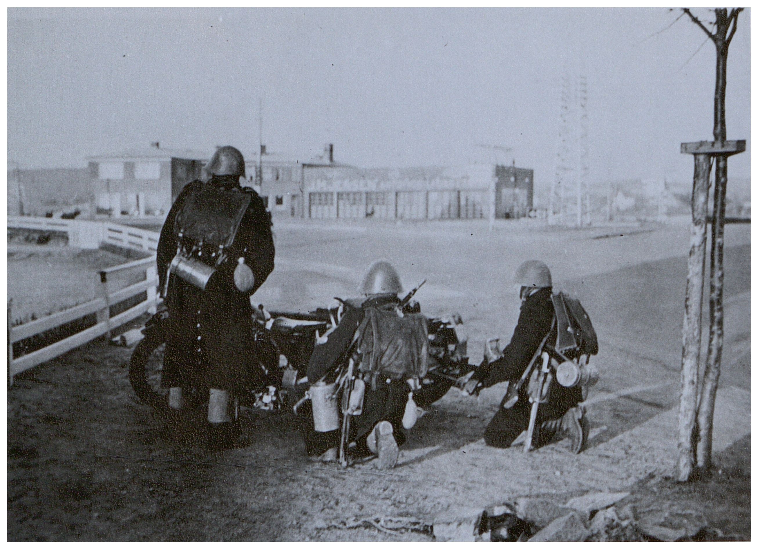 Enkeltfoto fra fotoalbum der har tilhørt fotohandler Jens Christian Høeg fra Randers. Indeholder fortrinsvis fotos fra daliglivet under besættelsen herunder mørklægning. De første sider omhandler dog den 9. april 1940 i Sønderjylland.