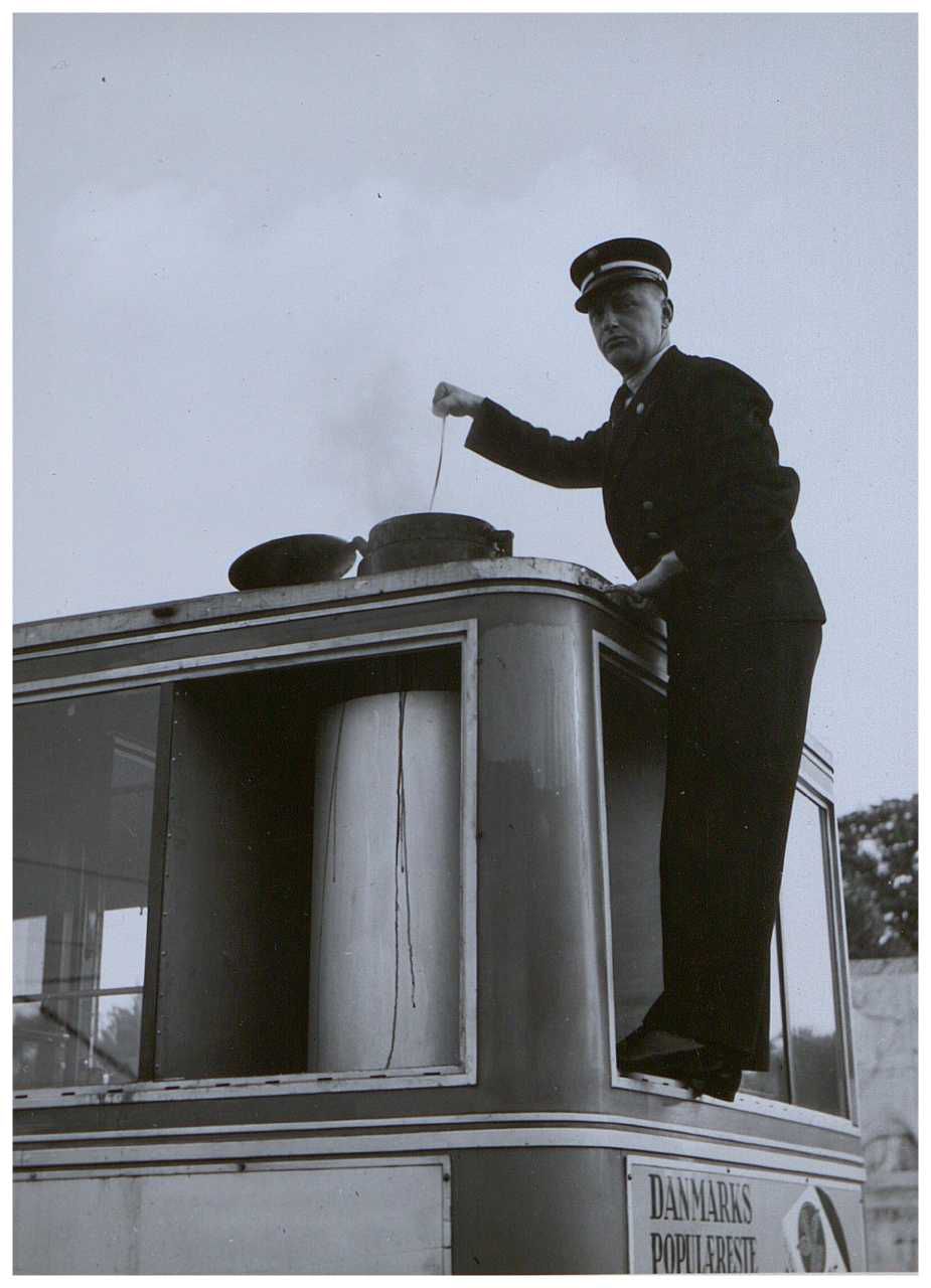 Enkeltfoto fra fotoalbum der har tilhørt fotohandler Jens Christian Høeg fra Randers. Indeholder fortrinsvis fotos fra daliglivet under besættelsen herunder mørklægning. De første sider omhandler dog den 9. april 1940 i Sønderjylland.