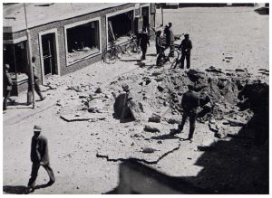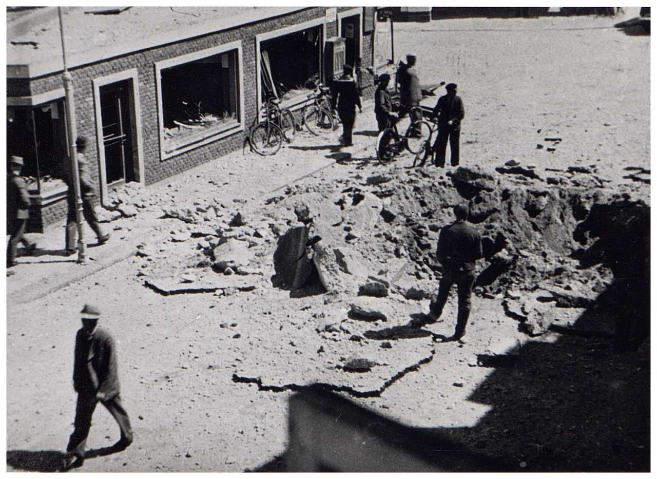 Enkeltfoto fra fotoalbum der har tilhørt fotohandler Jens Christian Høeg fra Randers. Nogle sider med fotos fra felttoget i Frankrig 1940 og diverse allierede luftangreb i Danmark, herunder Ålborg juli 1940.