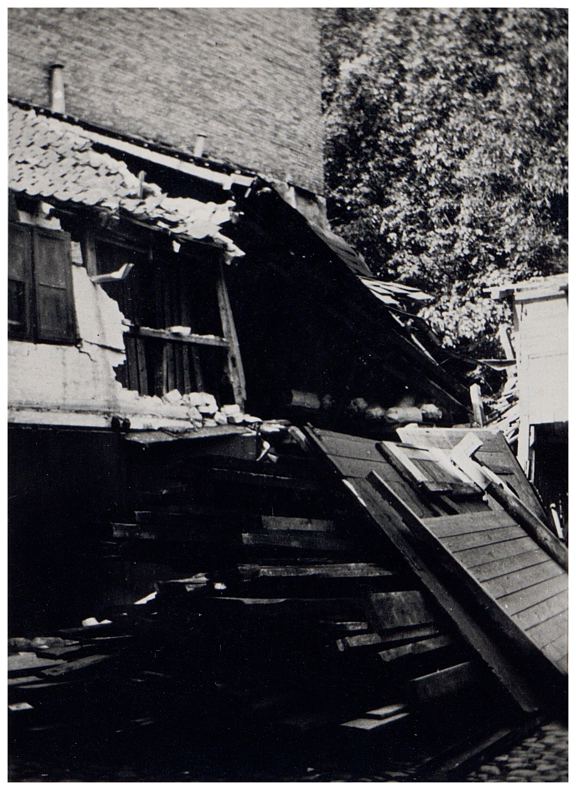 Enkeltfoto fra fotoalbum der har tilhørt fotohandler Jens Christian Høeg fra Randers. Nogle sider med fotos fra felttoget i Frankrig 1940 og diverse allierede luftangreb i Danmark, herunder Ålborg juli 1940.