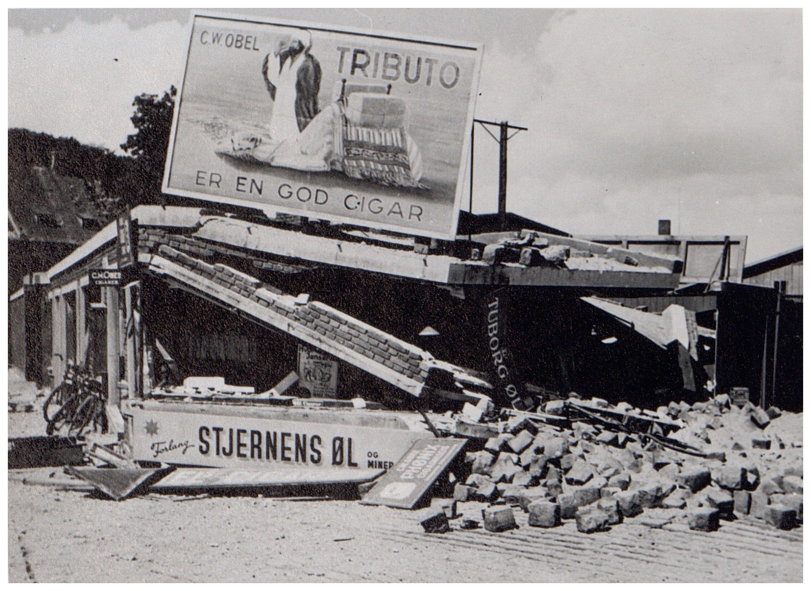 Enkeltfoto fra fotoalbum der har tilhørt fotohandler Jens Christian Høeg fra Randers. Nogle sider med fotos fra felttoget i Frankrig 1940 og diverse allierede luftangreb i Danmark, herunder Ålborg juli 1940.