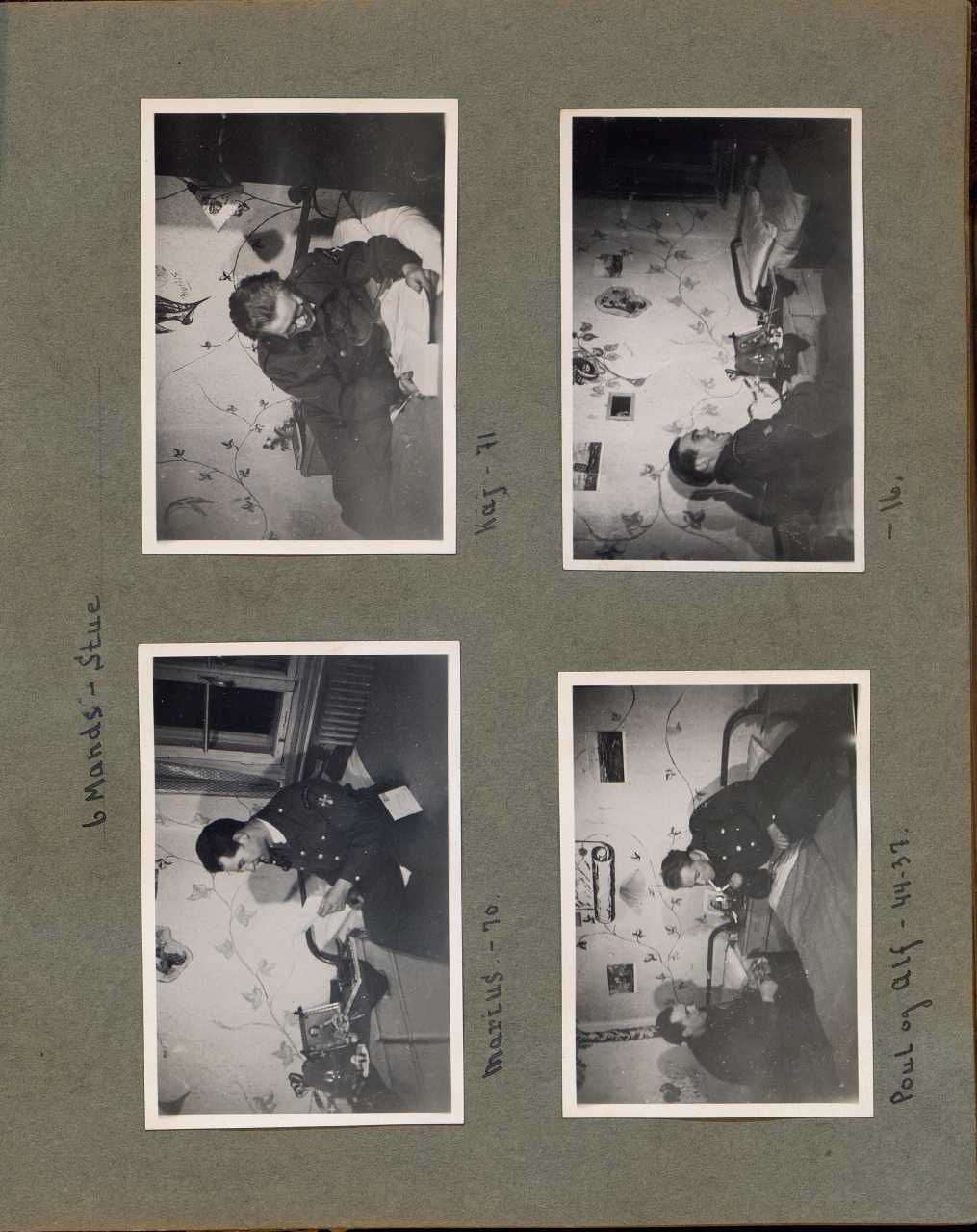 Enkeltside fra fotoalbum med fotos fra Den danske Tysklandsbrigades forberedelse i Danmark samt ophold i Aurich i 1947. Fotos taget af Willy Skovbo-Kristensen der var pioner i Brigaden.