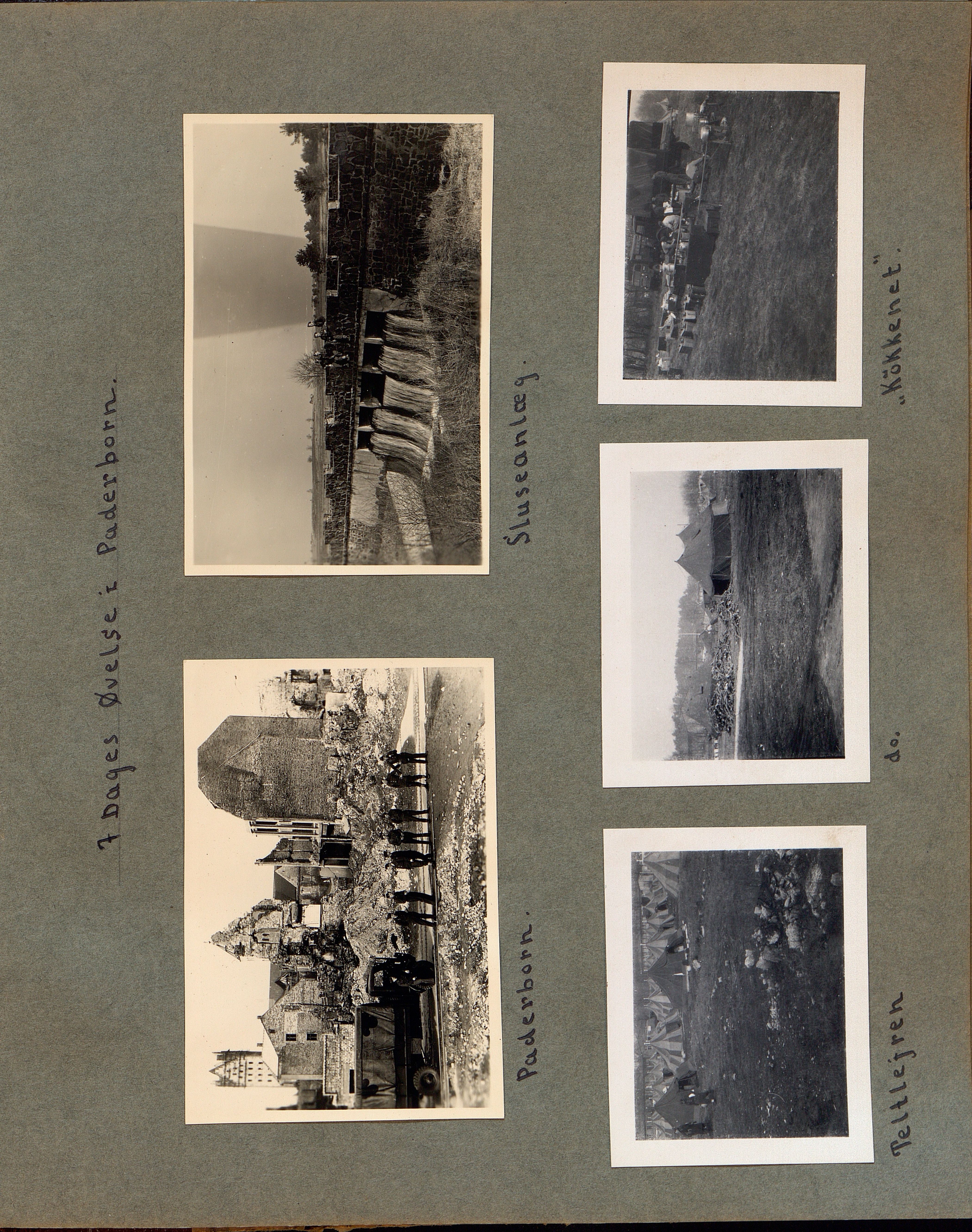Enkeltside fra fotoalbum med fotos fra Den danske Tysklandsbrigades forberedelse i Danmark samt ophold i Aurich i 1947. Fotos taget af Willy Skovbo-Kristensen der var pioner i Brigaden.