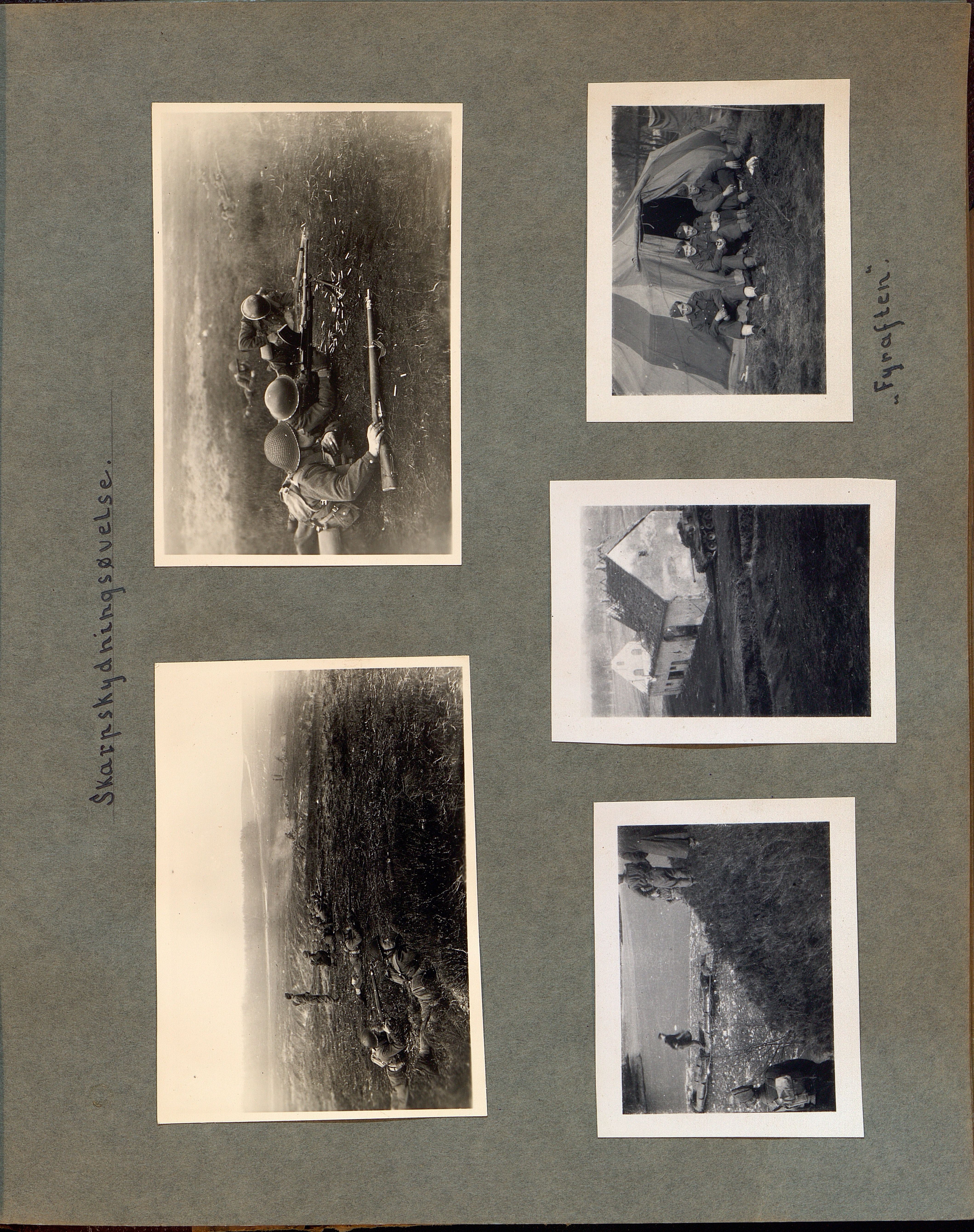 Enkeltside fra fotoalbum med fotos fra Den danske Tysklandsbrigades forberedelse i Danmark samt ophold i Aurich i 1947. Fotos taget af Willy Skovbo-Kristensen der var pioner i Brigaden.