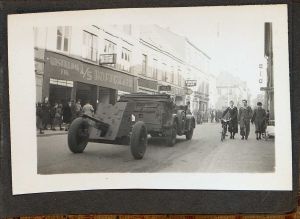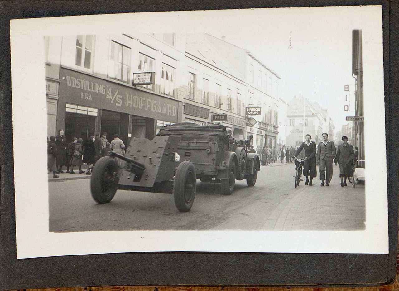 Enkeltside fra lille fotoalbum med ikke-originale billeder fra Sønderjylland den 9 april. Indleveret af Silkeborg lokalhistoriske arkiv.