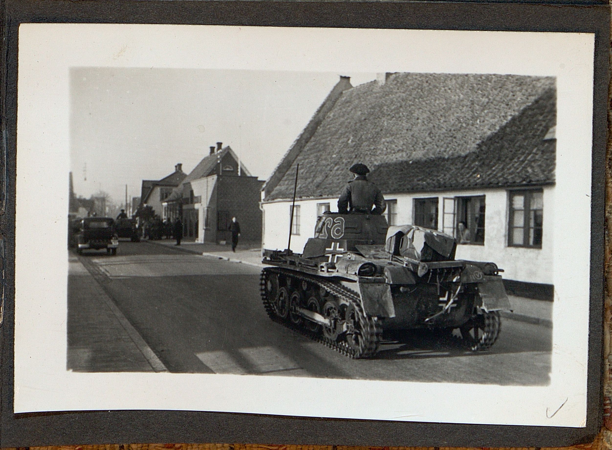 Enkeltside fra lille fotoalbum med ikke-originale billeder fra Sønderjylland den 9 april. Indleveret af Silkeborg lokalhistoriske arkiv.
