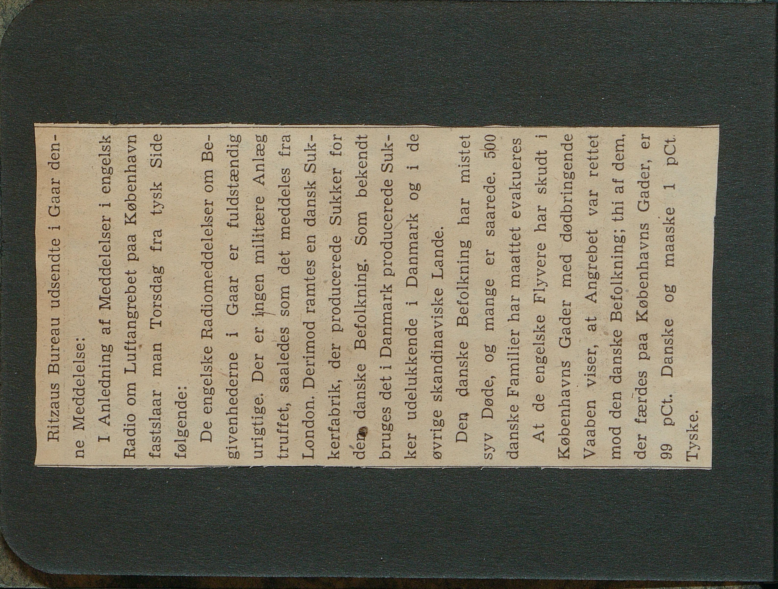 Enkeltside fra lille fotoalbum indeholdende 18 stk. små fotos vedr. bombardementet på B&W den 27.01.1943.