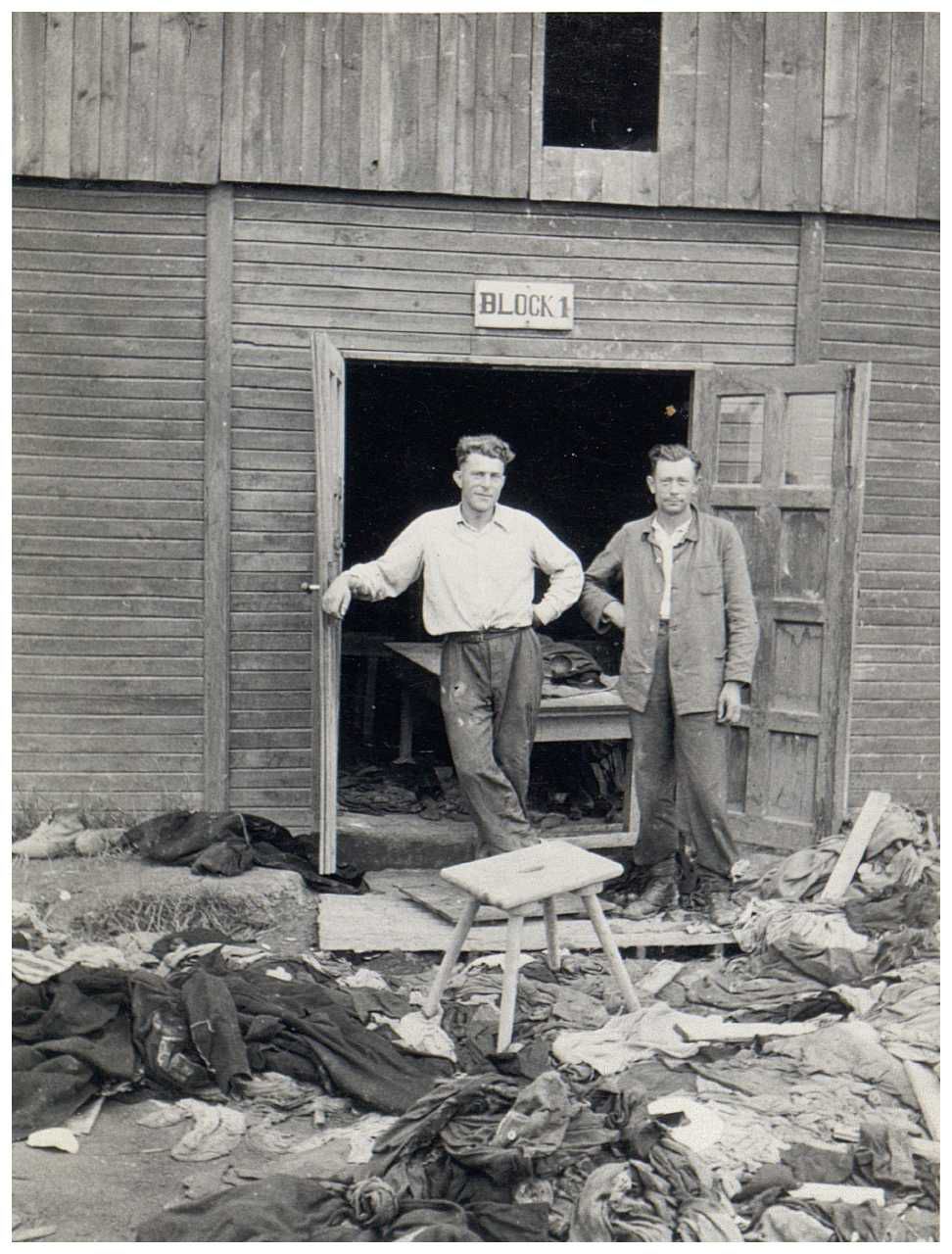 Enkeltfoto fra fotoalbum i to bind med fotos fra KZ-lejrene i Bergen-Belsen og Schandelah efter befrielsen.