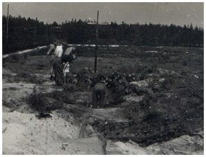 Enkeltfoto fra fotoalbum i to bind med fotos fra KZ-lejrene i Bergen-Belsen og Schandelah efter befrielsen.