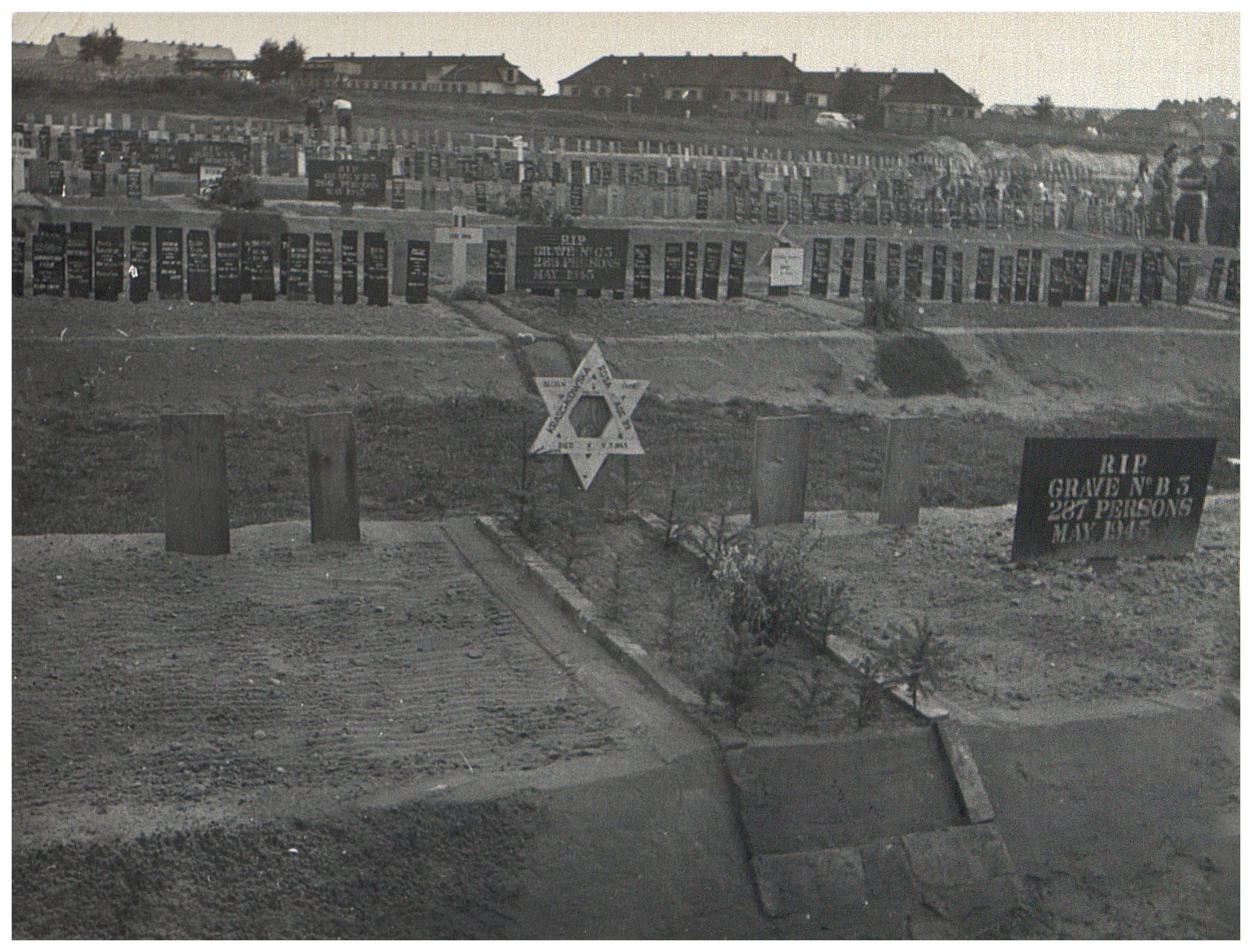 Enkeltfoto fra fotoalbum i to bind med fotos fra KZ-lejrene i Bergen-Belsen og Schandelah efter befrielsen.