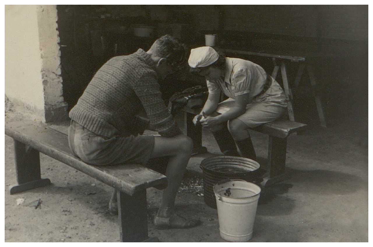 Enkeltfoto fra album med fotos fra Frivillig Dansk Arbejdstjenestes (Dansk Samling) Trollebjerggaardlejr i perioden 05.07.-02.08.1942. Fotos taget af 3 deltagere, der er nævnt i FDA's årberetning 1942-1943, s.22.