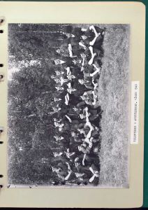 Enkeltside fra kombineret scrapbog og fotoalbum med fotokopier og fotos vedr. de danske soldater fra Roskilde, der tog til Sverige den 9. april 1940 og som opholdt sig på Ljungbyhed.