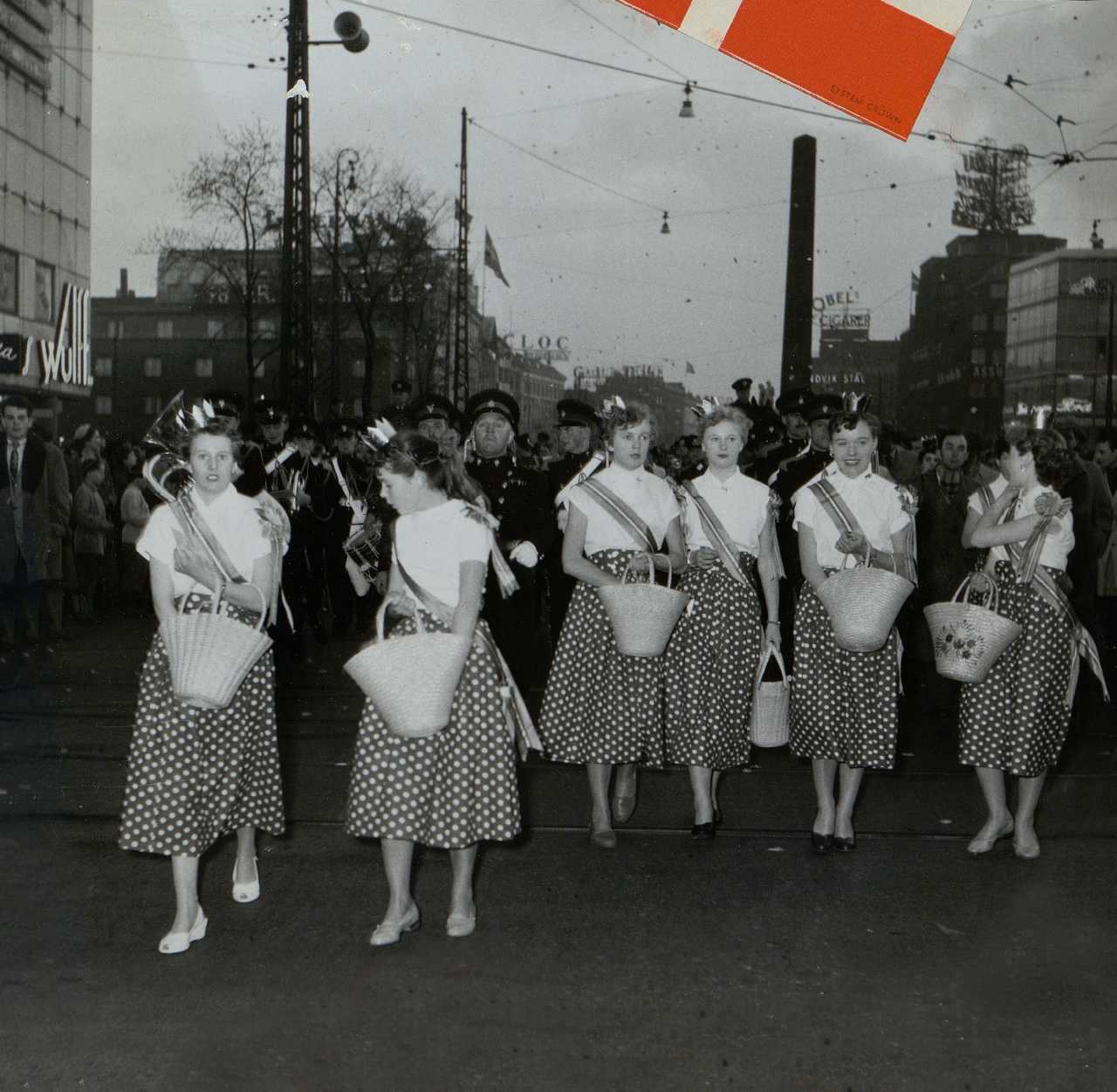 Enkeltfoto fra album med 15 indklæbede fotos og 12 løse samt 5 siders udklip. Vedrører 10 års jubilæet for Danmarks befrielse.