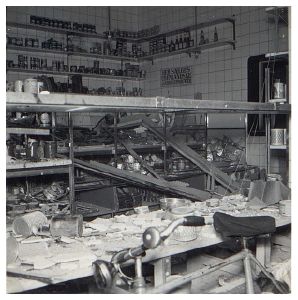 Enkeltfoto fra album med fotos vedr. bombningen af B&W og omgivelser den 27.01.1943, samt 6 fotos vedr. sabotagen mod Forum". Dertil fotos af beskyttelsesrum ved Søerne.