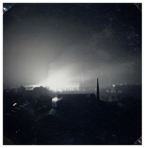 Enkeltfoto fra album med fotos vedr. bombningen af B&W og omgivelser den 27.01.1943, samt 6 fotos vedr. sabotagen mod Forum". Dertil fotos af beskyttelsesrum ved Søerne.