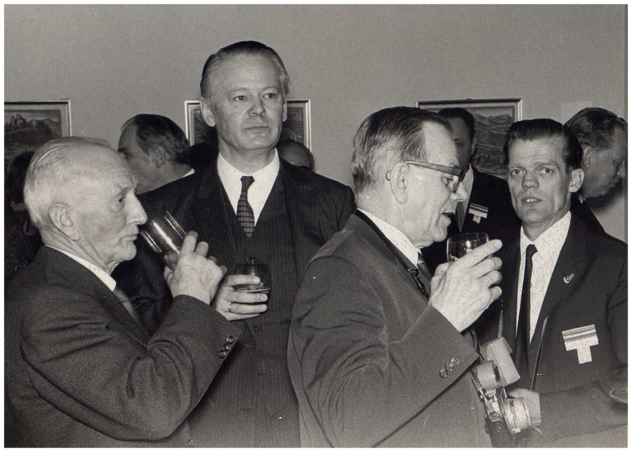 Enkeltfoto fra fotoalbum med fotos fra en mindetur til Polen arrangeret af foreningen"Gestapofangerne". Krandsenedlæggelse i Warszawa og besøg i Frihedsmuseets udstilling i Auschwitz. Frihedsmuseets leder Aage Roussell ses.