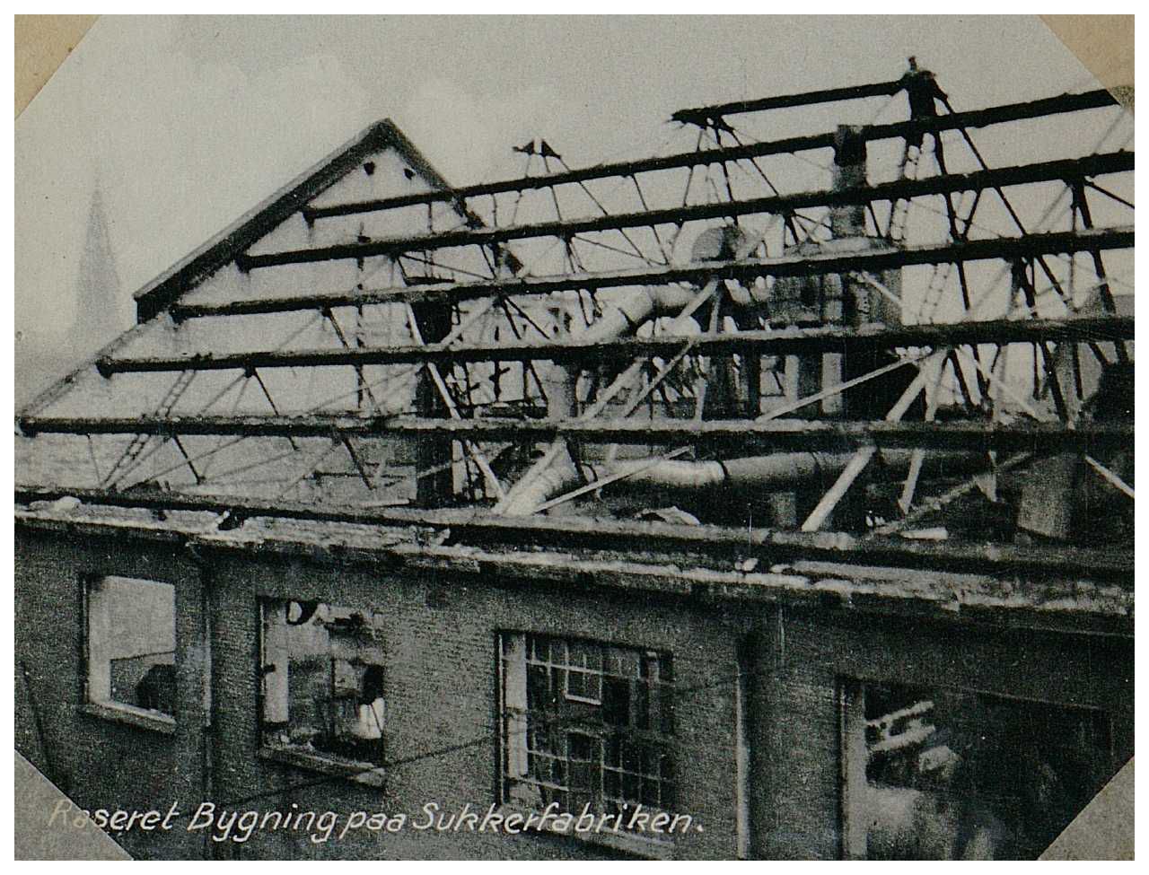 Enkeltfoto fra fotoalbum med en serie af fotos fra flyangrebet på B&W og sukkerraffinaderiet Phønix den 27.01.1943.