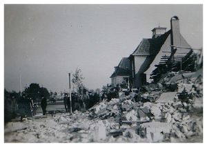Enkeltfoto fra album med blandede fotos fra tiden juni 1944 til april 1945. Bl.a. fra Folkestrejken, angrebet på Shellhuset, nedstyrtet Spitfire på Øster Allé fra den 21.03 1945, diverse schalburgtager, udbringning af post i hestevogn m.m.