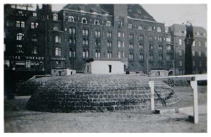 Enkeltfoto fra album med blandede fotos fra tiden juni 1944 til april 1945. Bl.a. fra Folkestrejken, angrebet på Shellhuset, nedstyrtet Spitfire på Øster Allé fra den 21.03 1945, diverse schalburgtager, udbringning af post i hestevogn m.m.