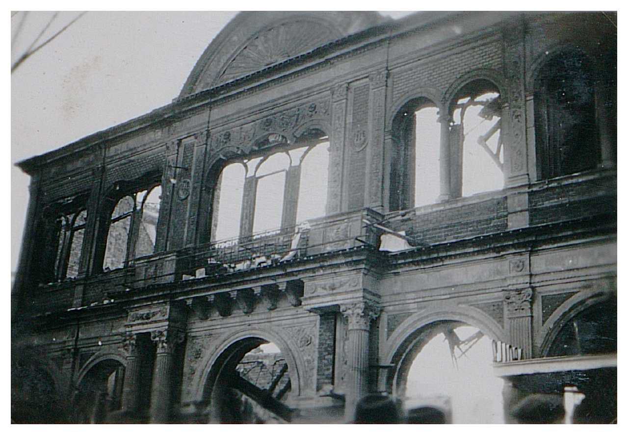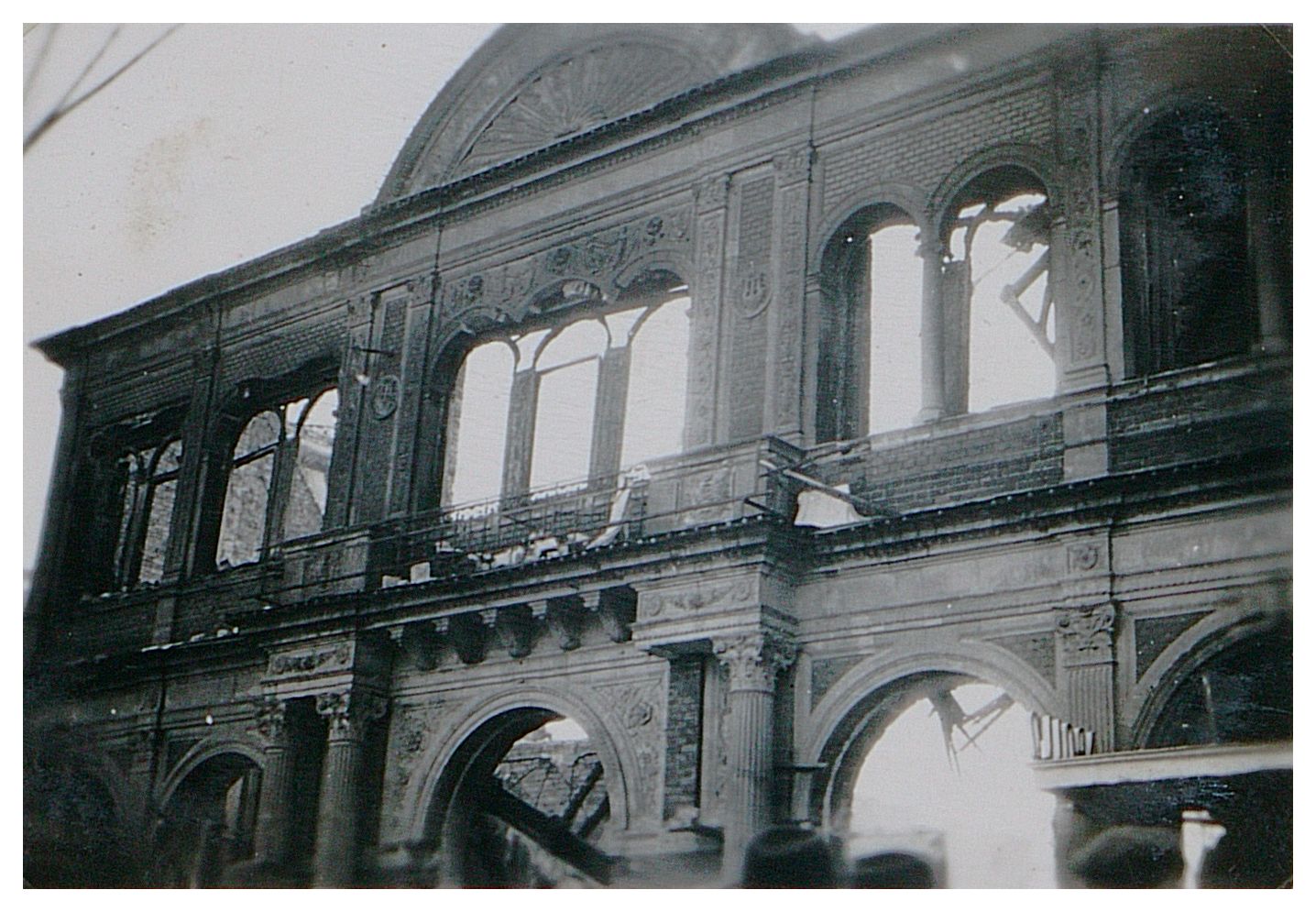 Enkeltfoto fra album med blandede fotos fra tiden juni 1944 til april 1945. Bl.a. fra Folkestrejken, angrebet på Shellhuset, nedstyrtet Spitfire på Øster Allé fra den 21.03 1945, diverse schalburgtager, udbringning af post i hestevogn m.m.