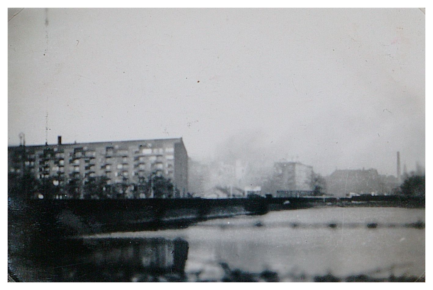 Enkeltfoto fra album med blandede fotos fra tiden juni 1944 til april 1945. Bl.a. fra Folkestrejken, angrebet på Shellhuset, nedstyrtet Spitfire på Øster Allé fra den 21.03 1945, diverse schalburgtager, udbringning af post i hestevogn m.m.