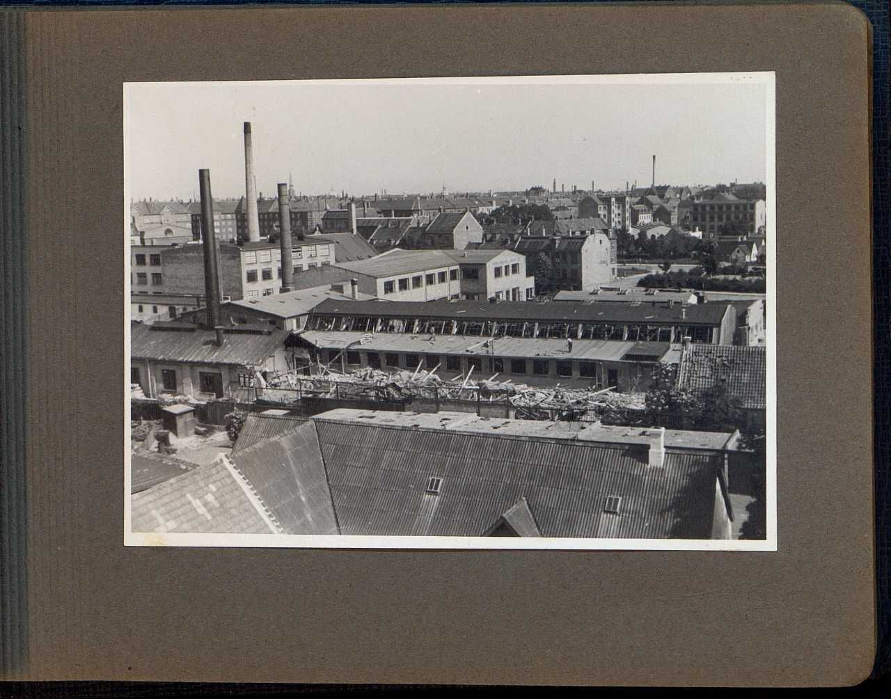 Enkeltside fra fotoalbum med titlen: "Krigskatastrofer paa Dansk Aluminiums Industri A/S". Viser fotos fra 3 sabotager fra henholdsvis 19.02-20.02.1943 (KOPA), 30.06.1944 (BOPA) og 17.01.1945 (BOPA).