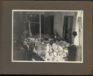 Enkeltside fra fotoalbum med titlen: "Krigskatastrofer paa Dansk Aluminiums Industri A/S". Viser fotos fra 3 sabotager fra henholdsvis 19.02-20.02.1943 (KOPA), 30.06.1944 (BOPA) og 17.01.1945 (BOPA).