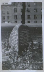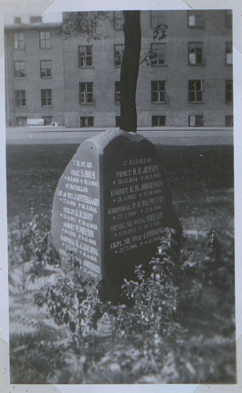 Enkeltfoto fra mindealbum på 29 sider med fotos og tekster af mindesten og mindetavler m.m. Tekster og fotos samlet af major Kølving.