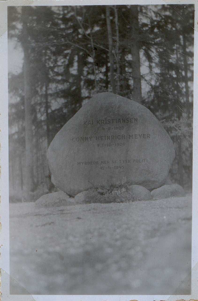 Enkeltfoto fra mindealbum på 29 sider med fotos og tekster af mindesten og mindetavler m.m. Tekster og fotos samlet af major Kølving.