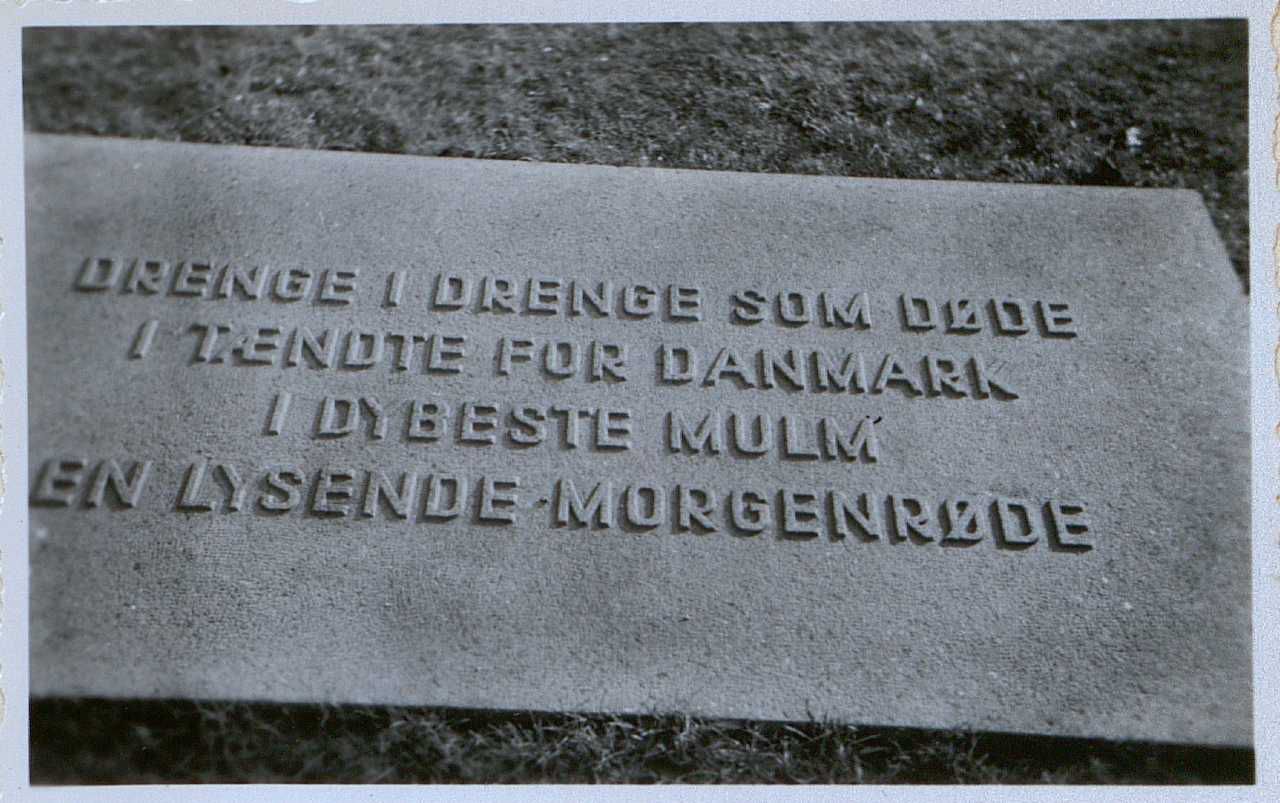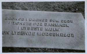 Enkeltfoto fra mindealbum på 29 sider med fotos og tekster af mindesten og mindetavler m.m. Tekster og fotos samlet af major Kølving.