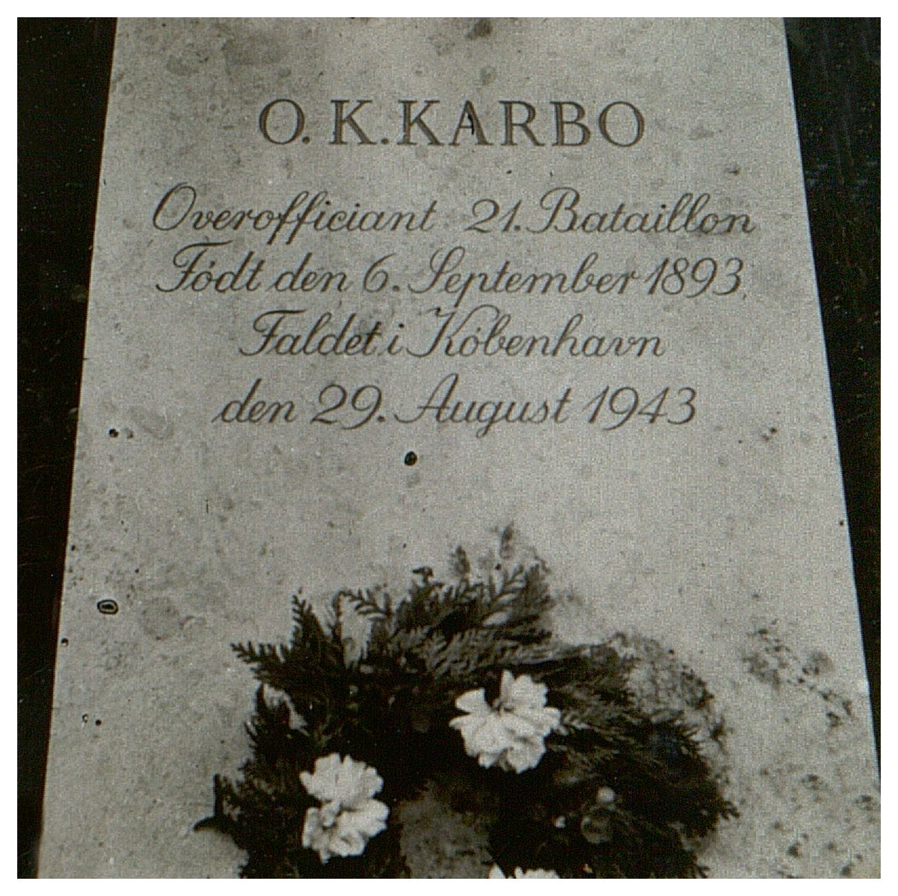 Enkeltfoto fra mindealbum med 35 sider fotos og tekster omhandlende de faldne og sårede soldater fra den 29.08.1943. Viser portrætter, grave og mindesteder m.m. Fotos og tekster samlet af major Kølving.