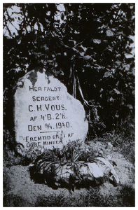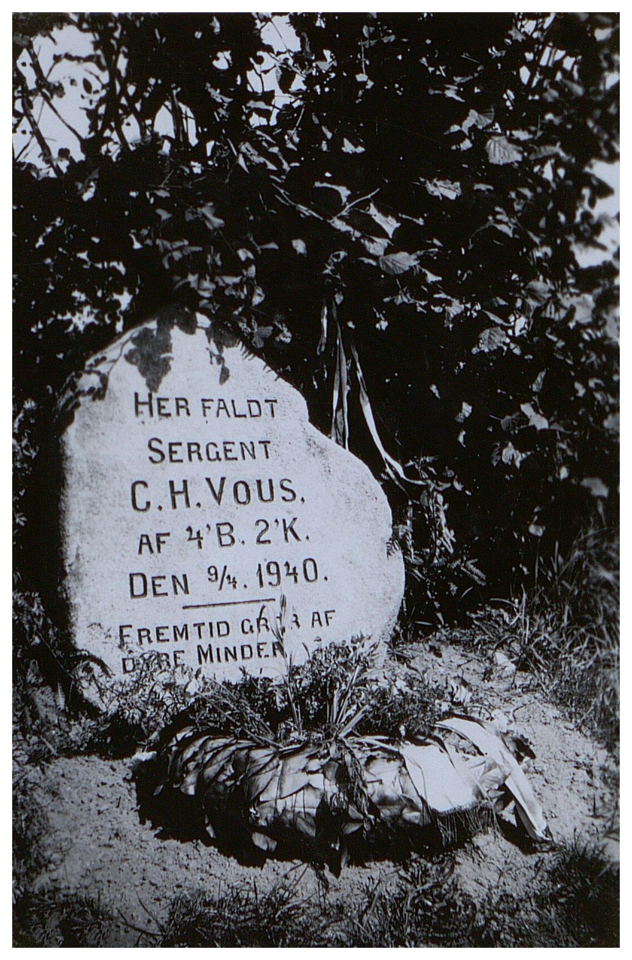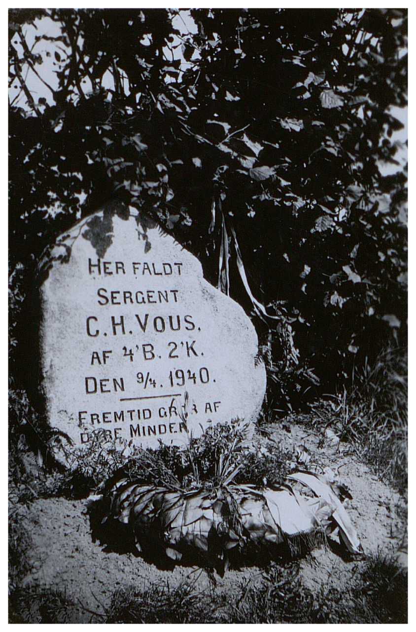 Enkeltside fra mindealbum med 35 sider fotos og tekster omhandlende de faldne fra den 9. april 1940. Viser portrætter, grave, mindesteder, fly, ødelagte våben m.m. Fotos og tekster samlet af major Kølving.