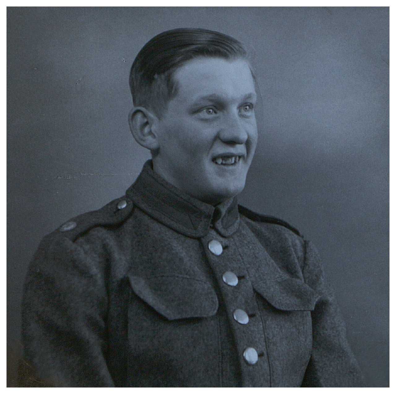 Enkeltside fra mindealbum med 35 sider fotos og tekster omhandlende de faldne fra den 9. april 1940. Viser portrætter, grave, mindesteder, fly, ødelagte våben m.m. Fotos og tekster samlet af major Kølving.