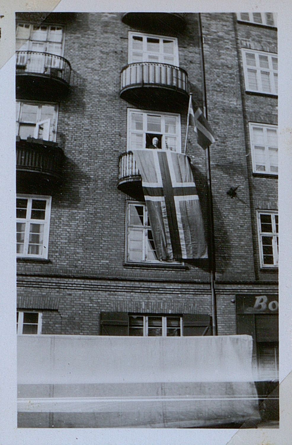 Enkeltfoto fra album med 45 fotos fra den sidste del af besættelsen herunder bombardementet af Shellhuset, samt befrielsesdagene. Dertil fotos fra Christian X's bisættelse. Et enkelt foto viser tyske enmands undervandsbåde oplagt ved Lynæs fortet.