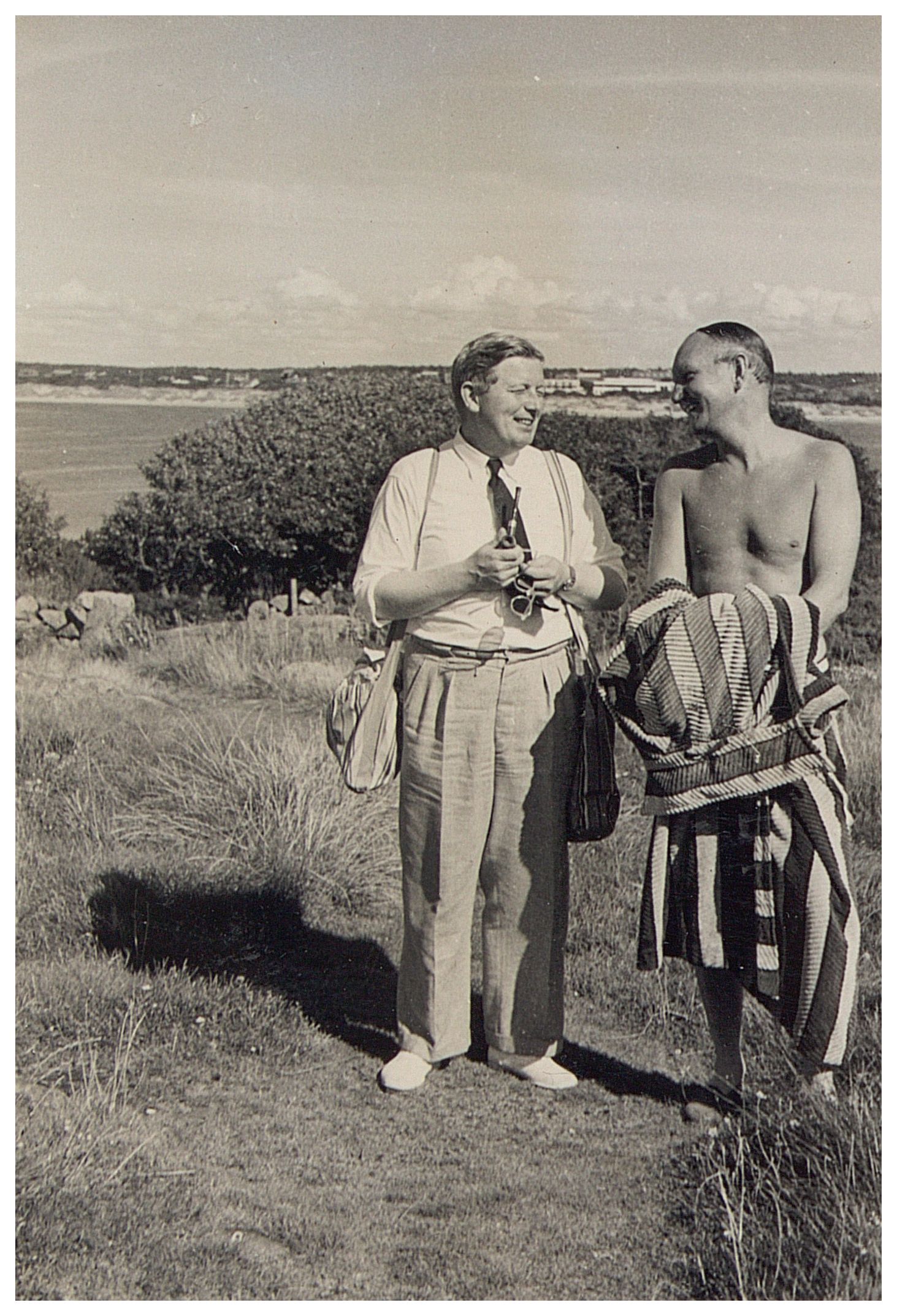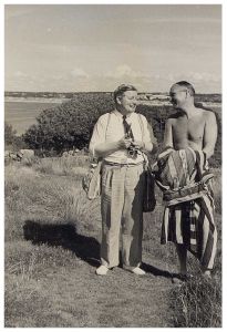 Enkeltfoto fra gæstebog med 49 siders fotos stammende fra reservelæge Niels Mogens Christiansen, der gjorde tjeneste ved Den danske brigade og kommandoen for militære flygtninge i Sverige, med tjeneststed i militærforlægningen Sofielund. Mest private fotos.
