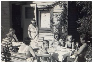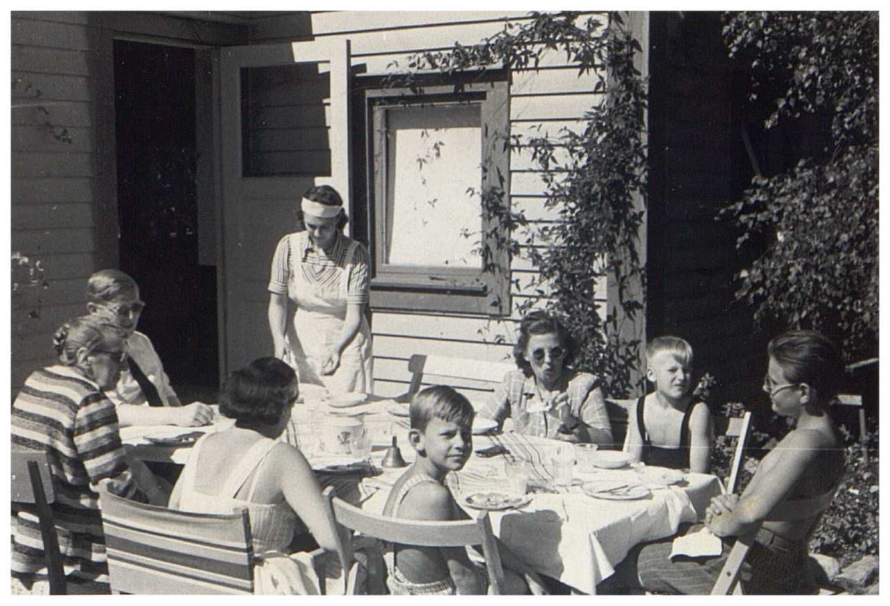 Enkeltfoto fra gæstebog med 49 siders fotos stammende fra reservelæge Niels Mogens Christiansen, der gjorde tjeneste ved Den danske brigade og kommandoen for militære flygtninge i Sverige, med tjeneststed i militærforlægningen Sofielund. Mest private fotos.