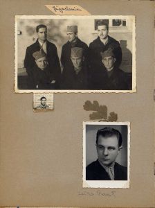 Enkeltside fra fotoalbum omhandlende især belgiske og polske krigsfanger, som Bernhardt Brandt sendte pakker til under deres ophold i tysk fangenskab. Bind 1 af i alt 2, der rummer fotos fra perioden 1939-45. Fotos formentlig sendt til Brandt som tak.