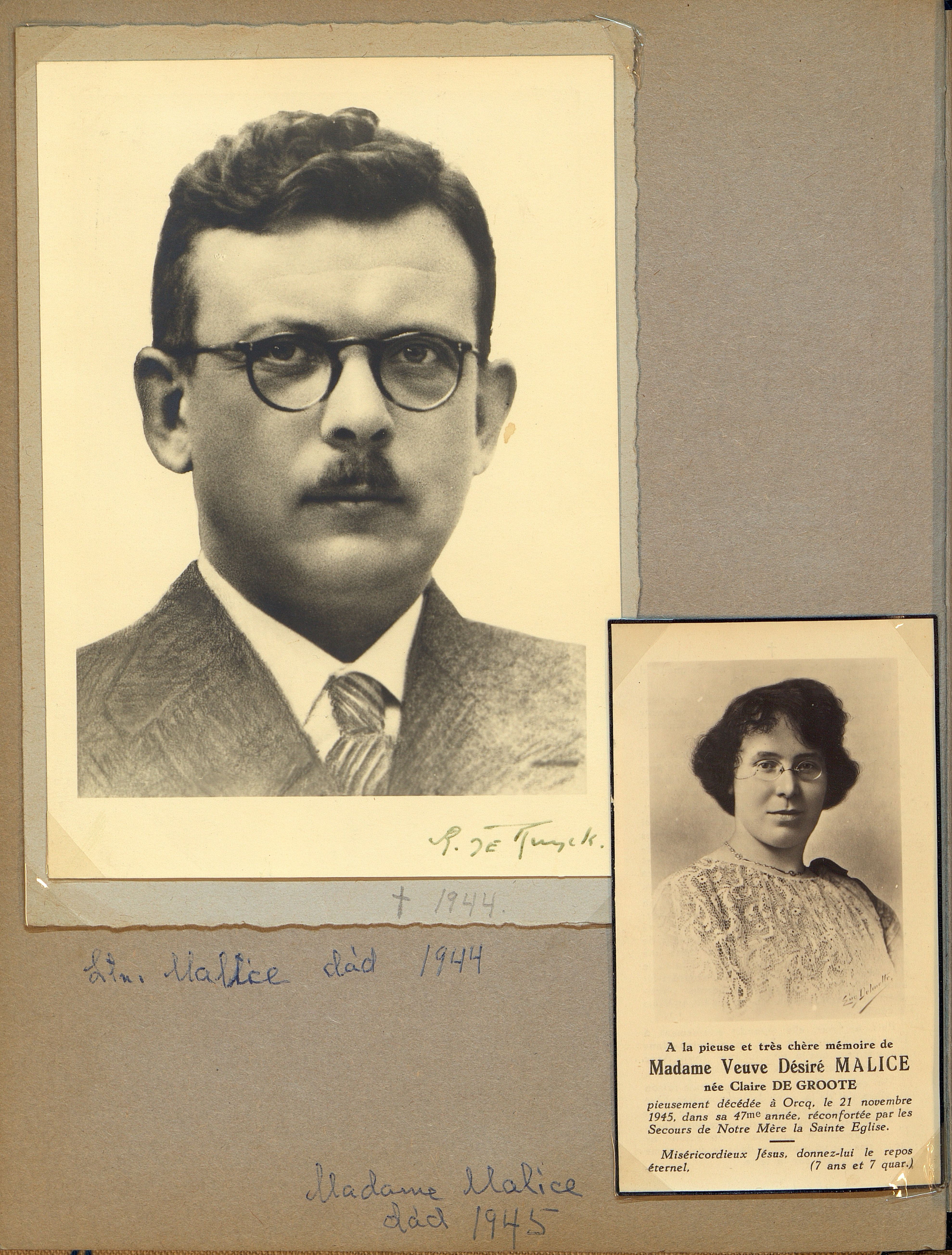 Enkeltside fra fotoalbum omhandlende især belgiske og polske krigsfanger, som Bernhardt Brandt sendte pakker til under deres ophold i tysk fangenskab. Bind 1 af i alt 2, der rummer fotos fra perioden 1939-45. Fotos formentlig sendt til Brandt som tak.