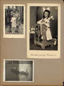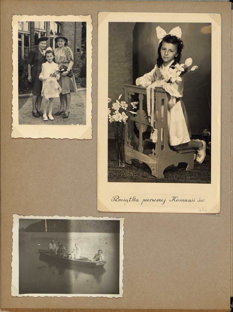 Enkeltside fra fotoalbum omhandlende tidl. belgiske og polske krigsfanger, som Bernhardt Brandt sendte pakker til under deres ophold i tysk fangenskab. Bind 2 af i alt 2, der rummer fotos fra perioden efter 1945. Fotos formentlig sendt til Brandt som tak.