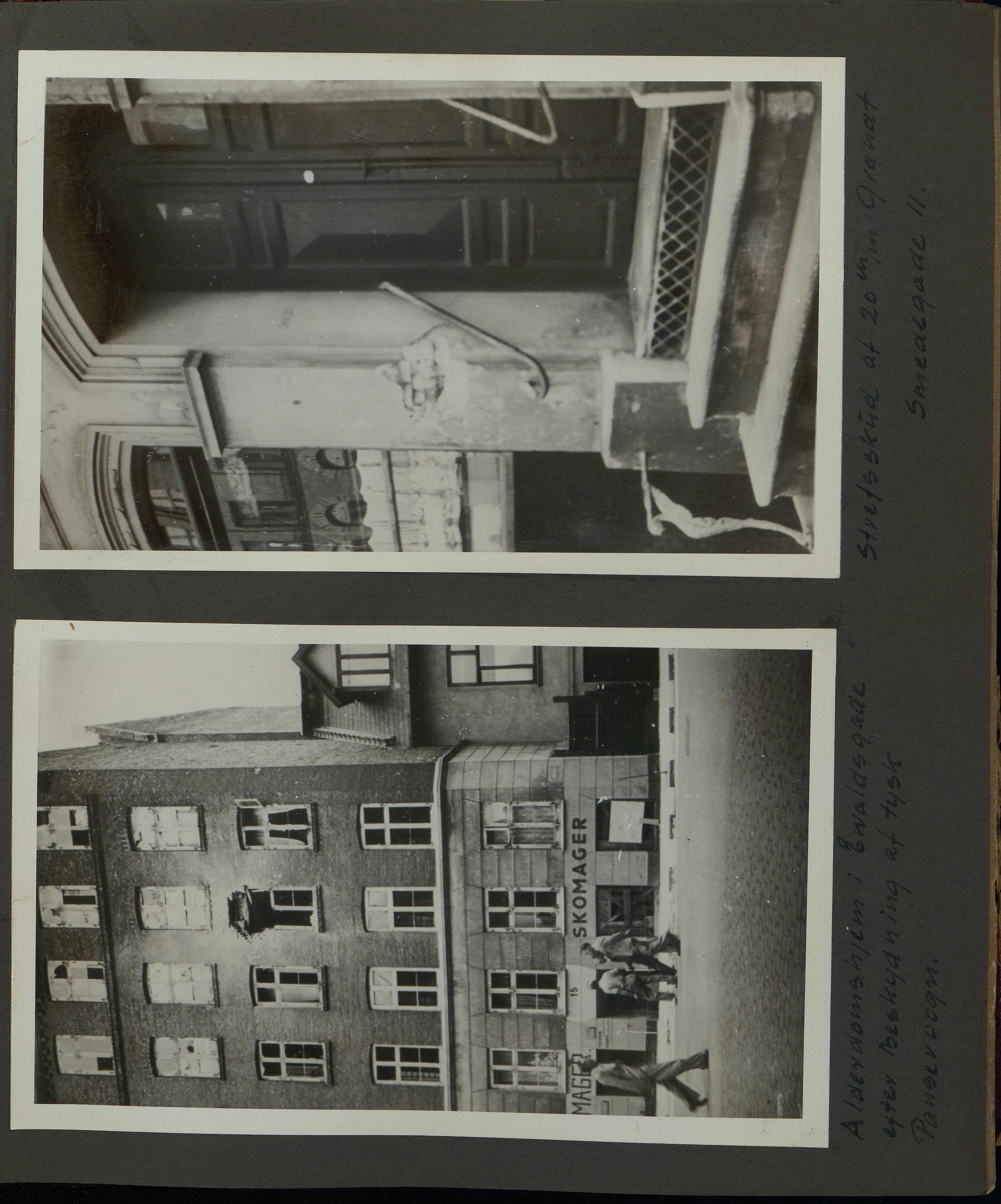 Enkeltside fra kombineret fotoalbum og scrapbog, især vedr. sabotager og Schalburgtager i Aalborg og i mindre grad Odense. Enkelte fotos fra Folkestrejken i KBH,